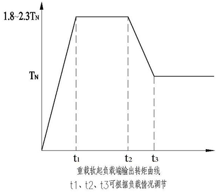 0~t1時(shí)間段:線性增加輸出轉(zhuǎn)矩至設(shè)定值(根據(jù)不同電機(jī)型號(hào),最大可設(shè)置到1.8~2.3倍額定轉(zhuǎn)矩);