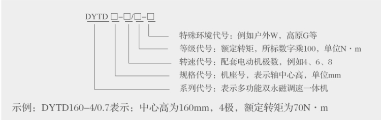 一體機(jī)型號(hào)由系列代號(hào)、規(guī)格代號(hào)、轉(zhuǎn)速代號(hào)、等級(jí)代號(hào)和環(huán)境代號(hào)五部分組成。
